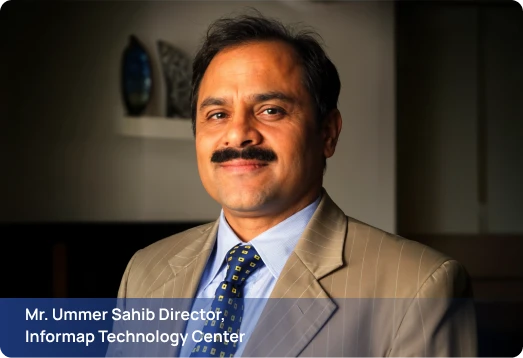 Mr. Ummer Sahib, Director of Informap, is a Technology Specialist with over 35 years of expertise in the Geospatial industry. Holding a Masters in City Planning from CEPT University, Ahmedabad India, Mr. Sahib has been instrumental in pioneering GIS and mapping solutions across multiple regions, including the UAE, India, Asia, Middle East and Europe.